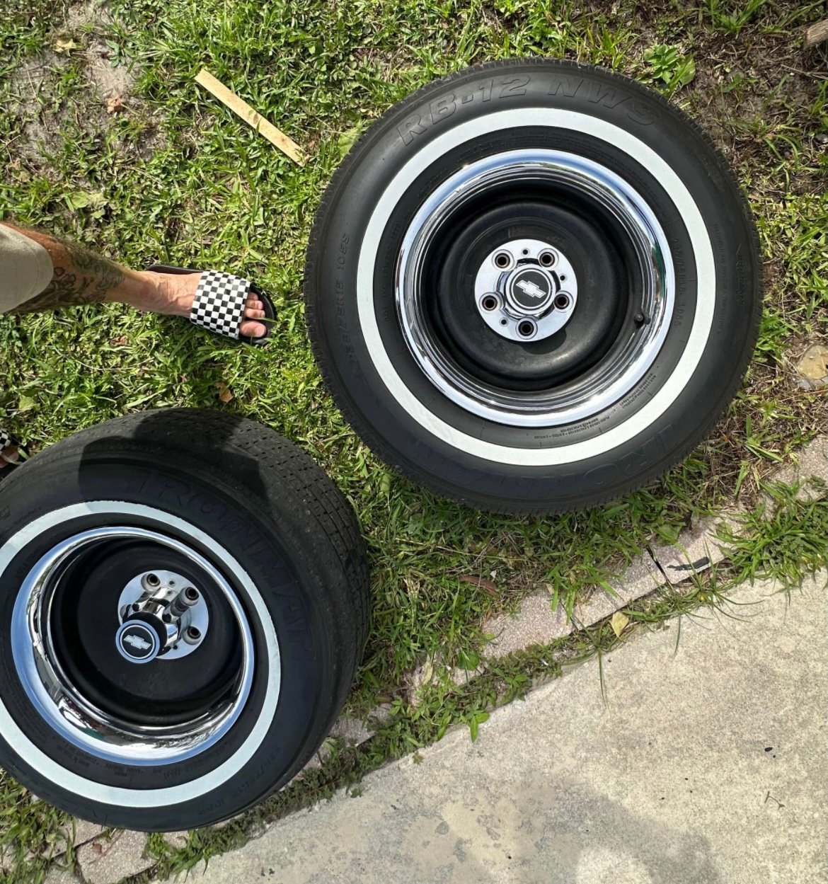 15″ rally wheels on 235/75/15 Ironman 1″ whitewalls .
