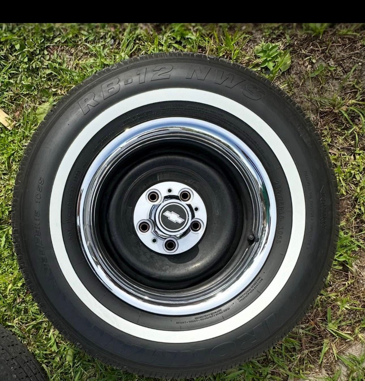 Two tires are like new and the other two have some wear but still have life left in them. I do have some Chevy rally center caps as well if needed. Lug pattern is 5×5