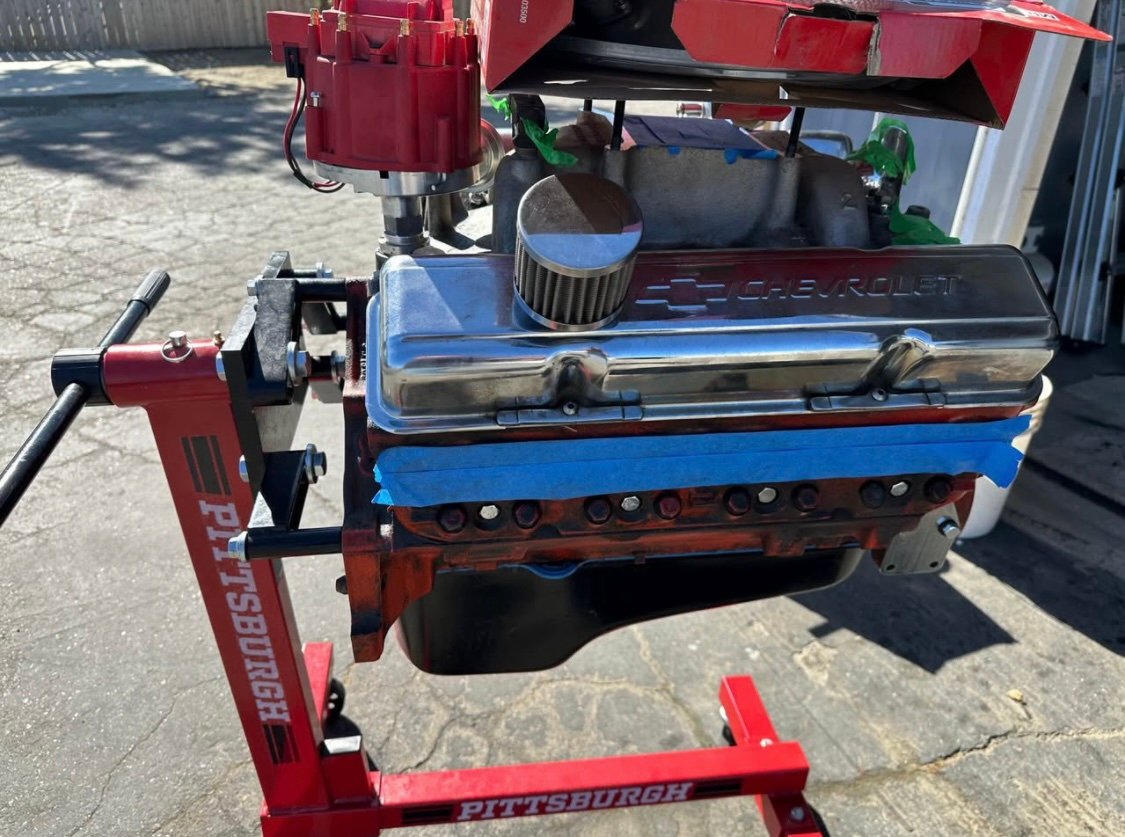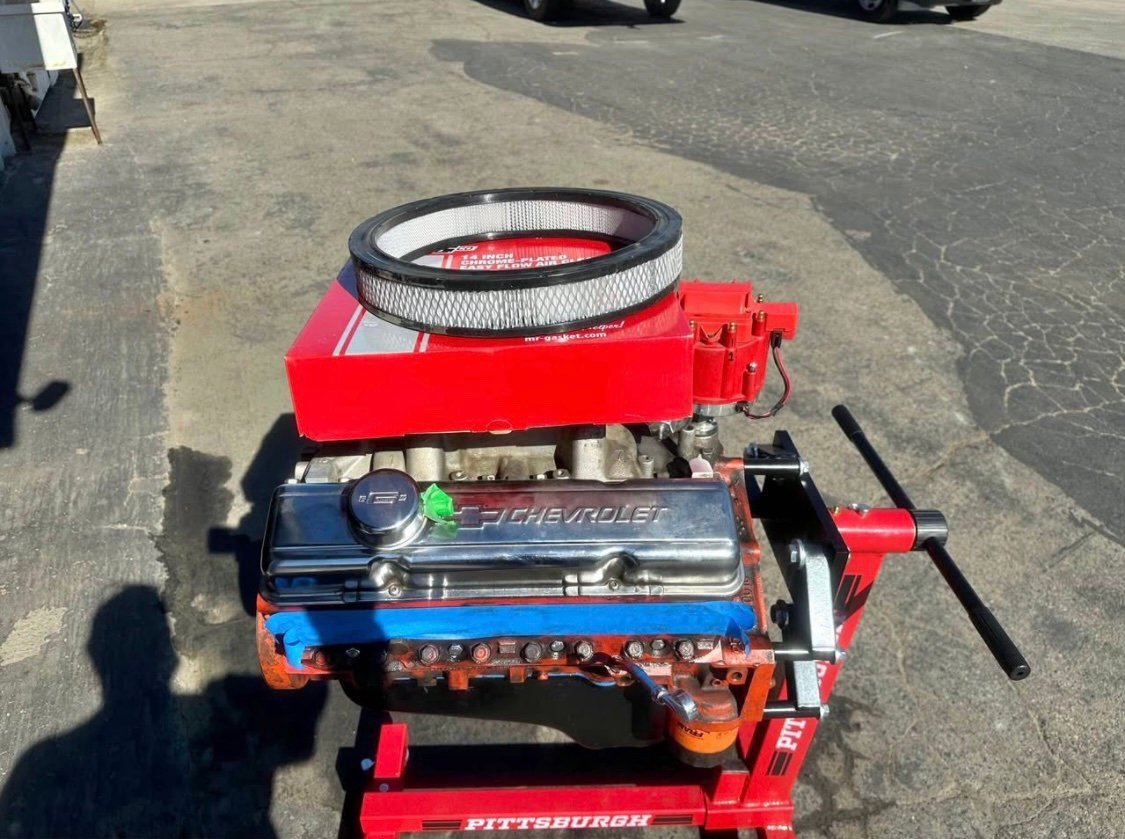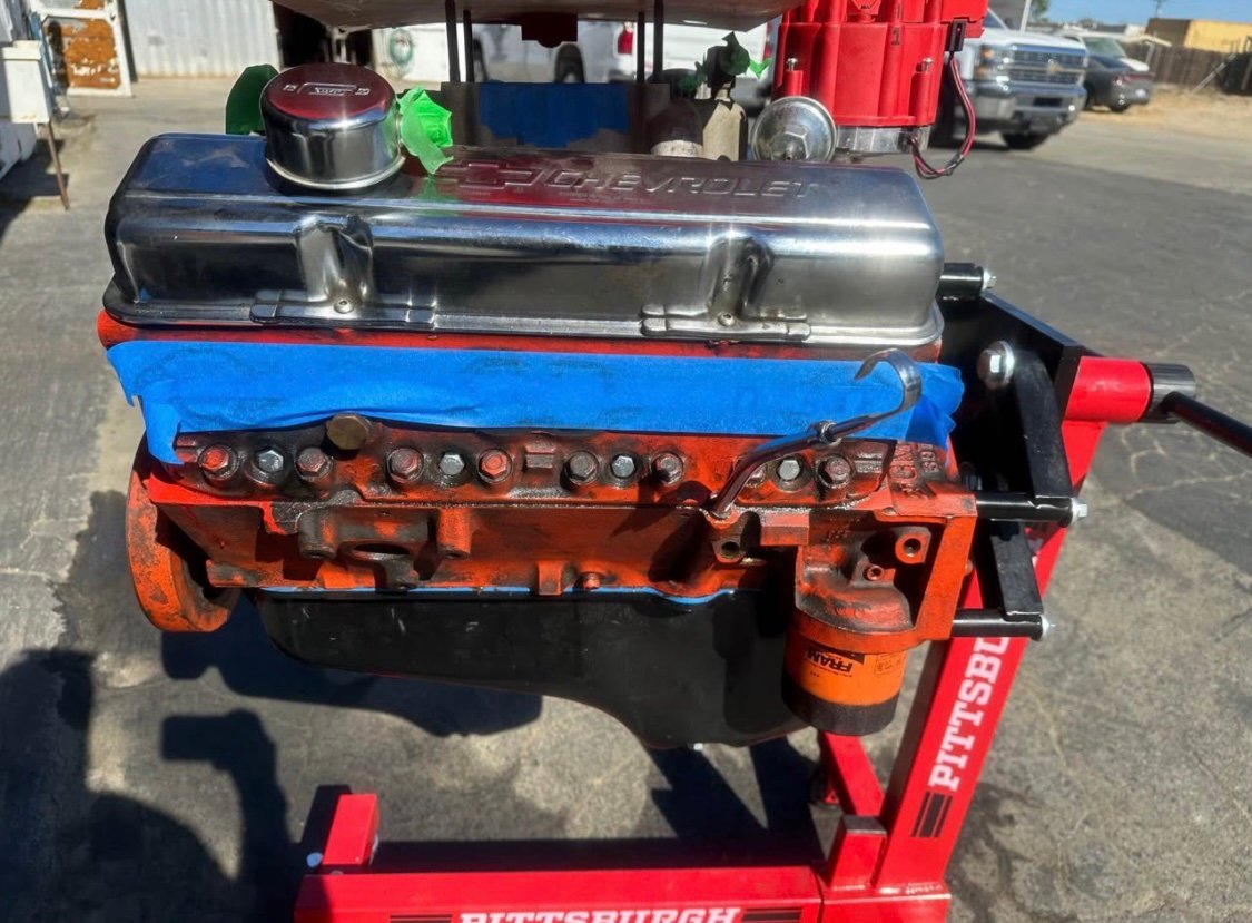 73 Camaro it has a Holley carburetor has the electronic ignition distributor and good spark, plug wires and spark plugs as the aluminum tall valve covers and a small starter not sure of the heads. I think they’re 194 intake valves