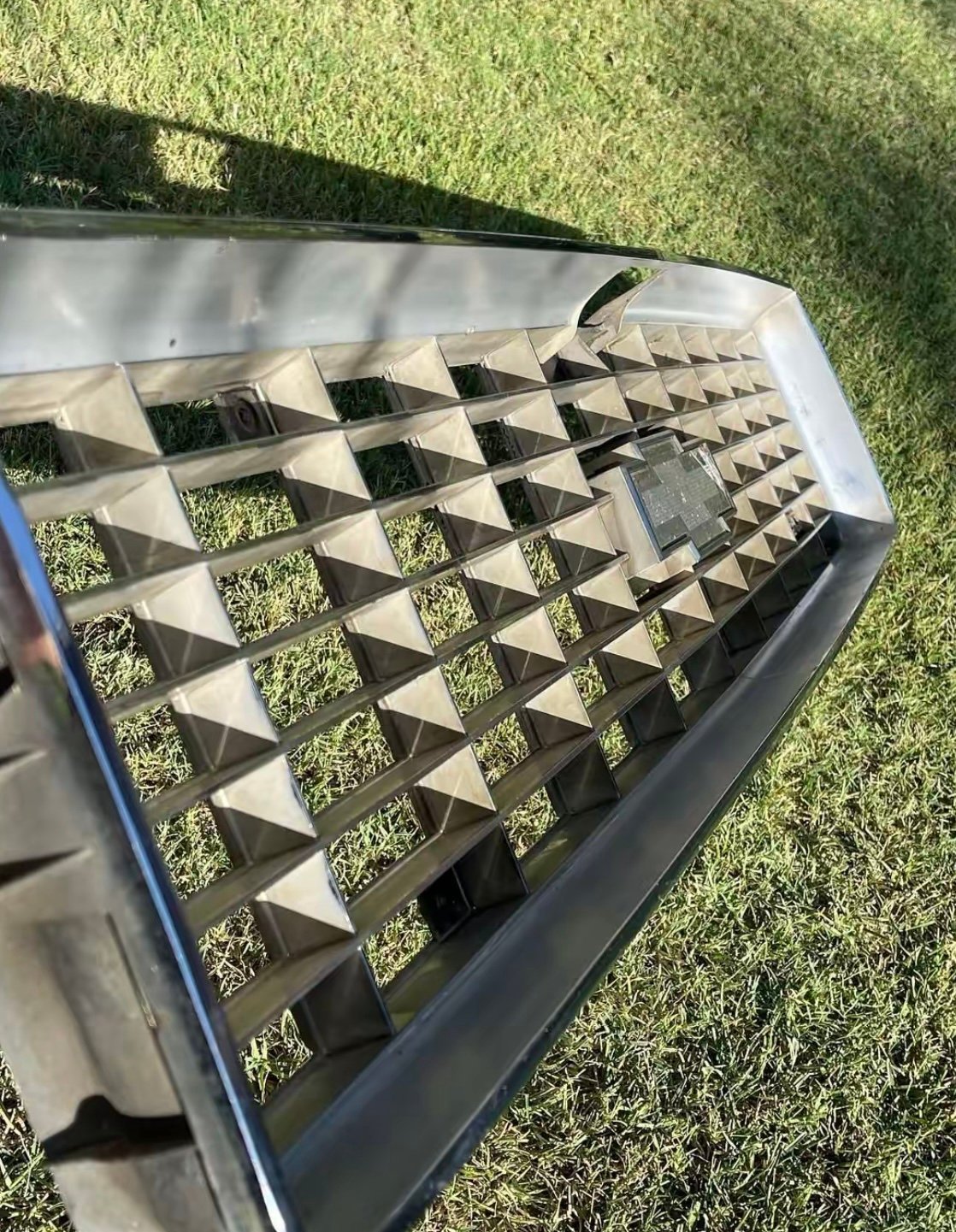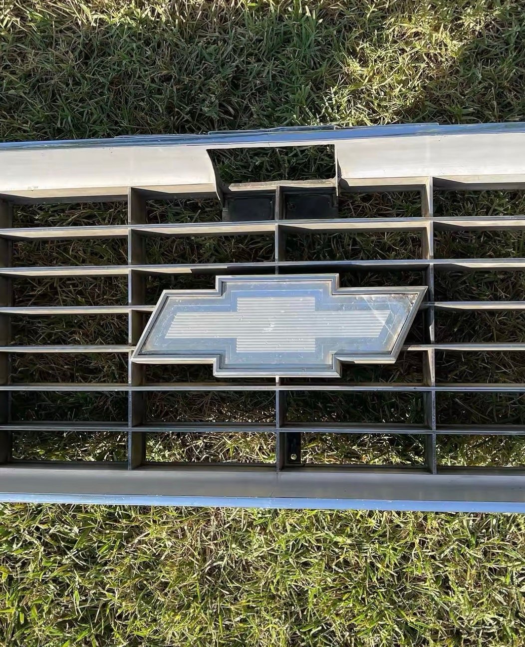 Grille is in great condition showing the normal signs of wear from use and age. No cracks, all mounting points in tact. Edge of the bow tie emblem is lifting and can be glued down or replaced if desired.