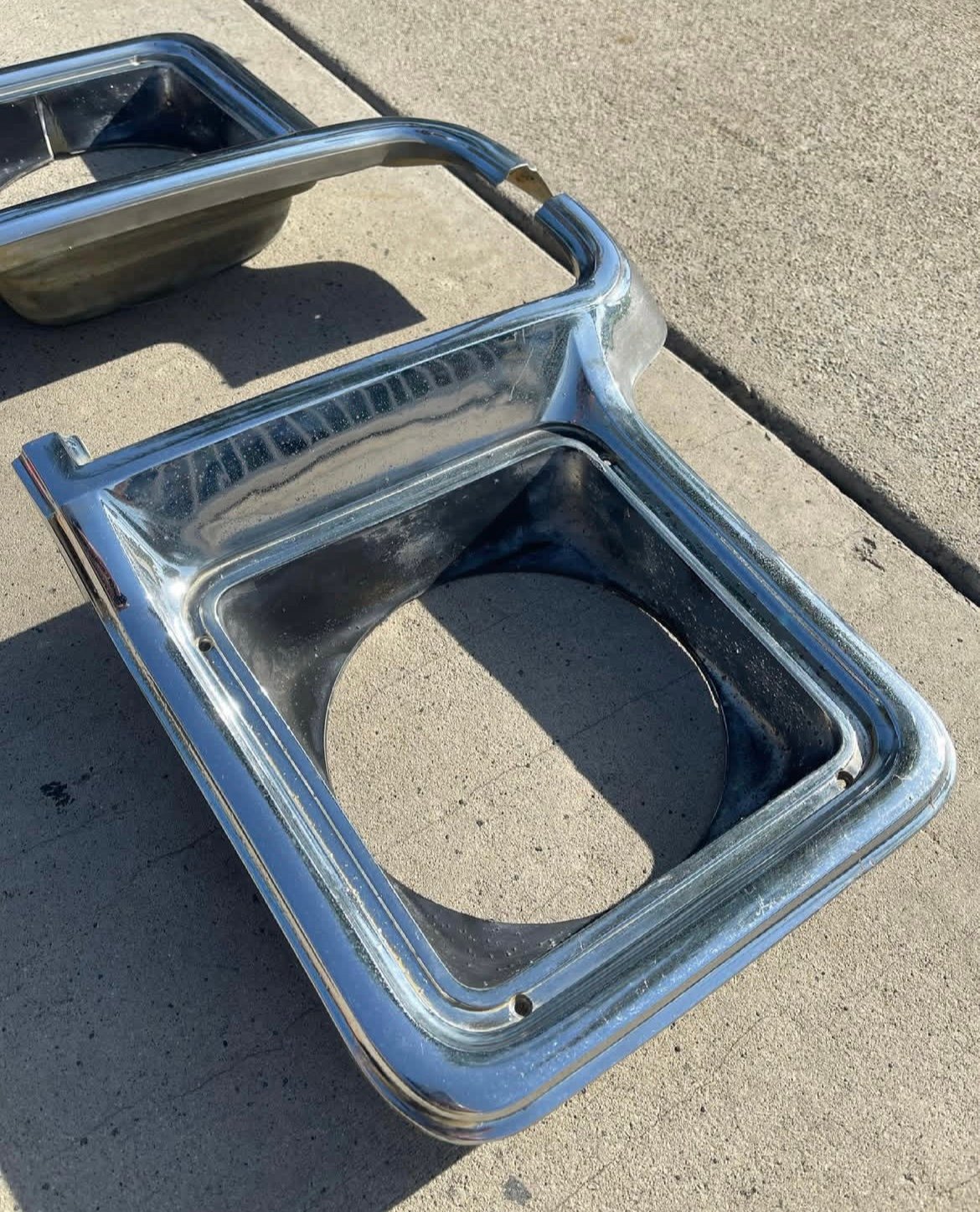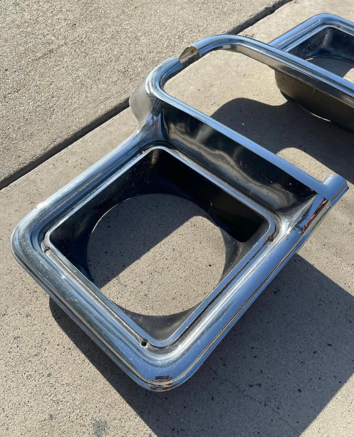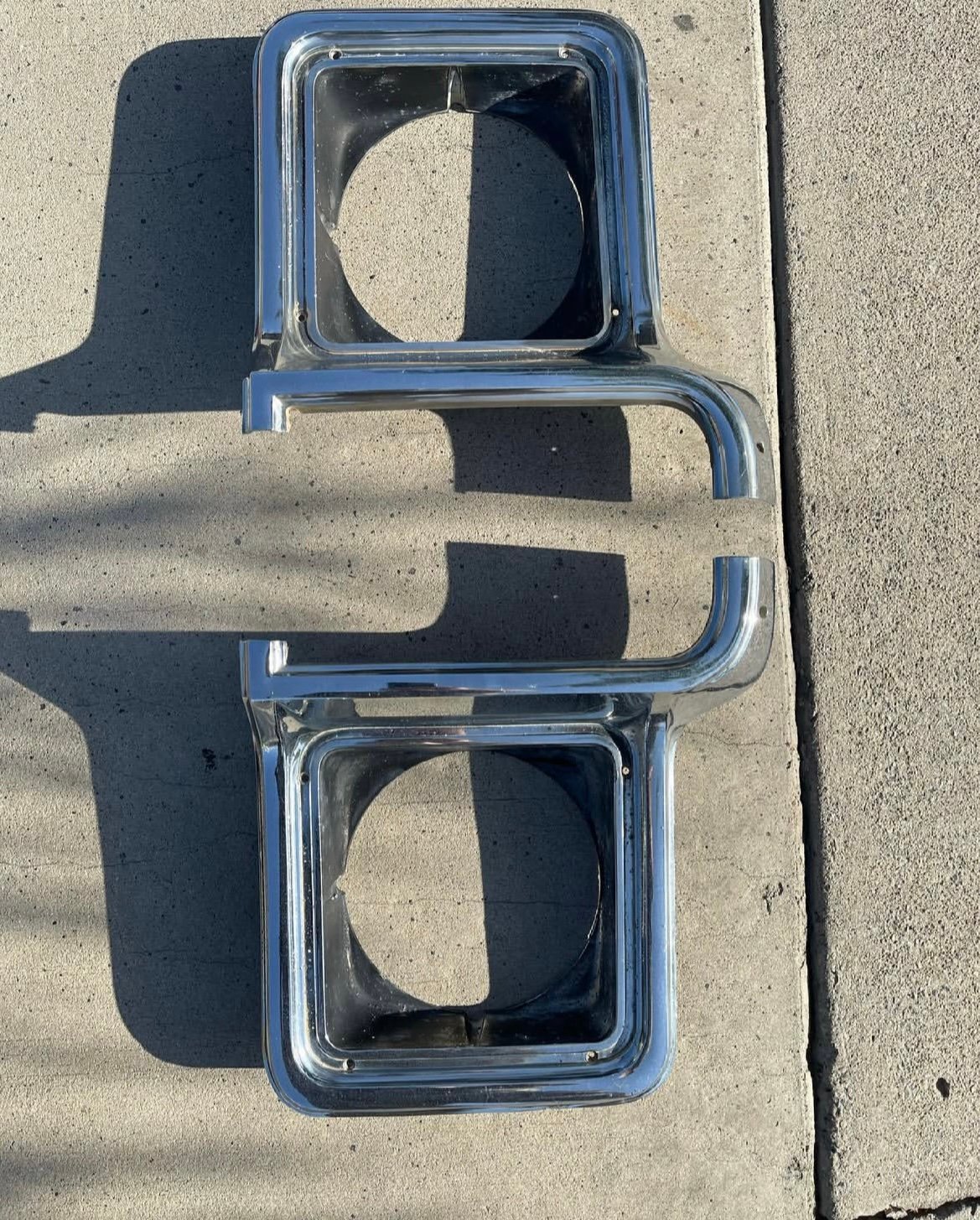 Original GM parts – Metal. Showing all the normal signs of wear and tear from use and age. Chrome is still in great shape and these can still be polished out or restored to a new finish if desired. No cracks or dents. These will fit your Squarebody trucks, k5 blazers and suburbans of similar years.