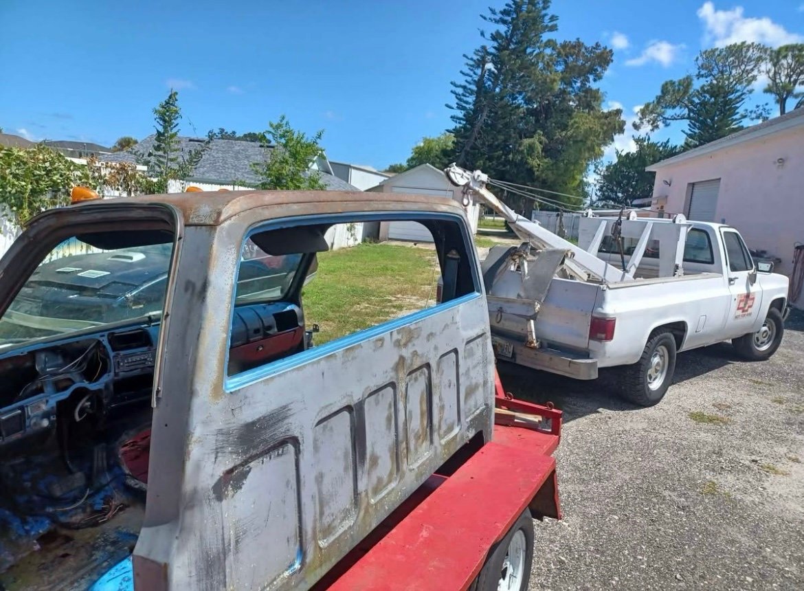 Short Bed square body project. A/C. Nice seat and dash pad. Everything is here except the engine.
