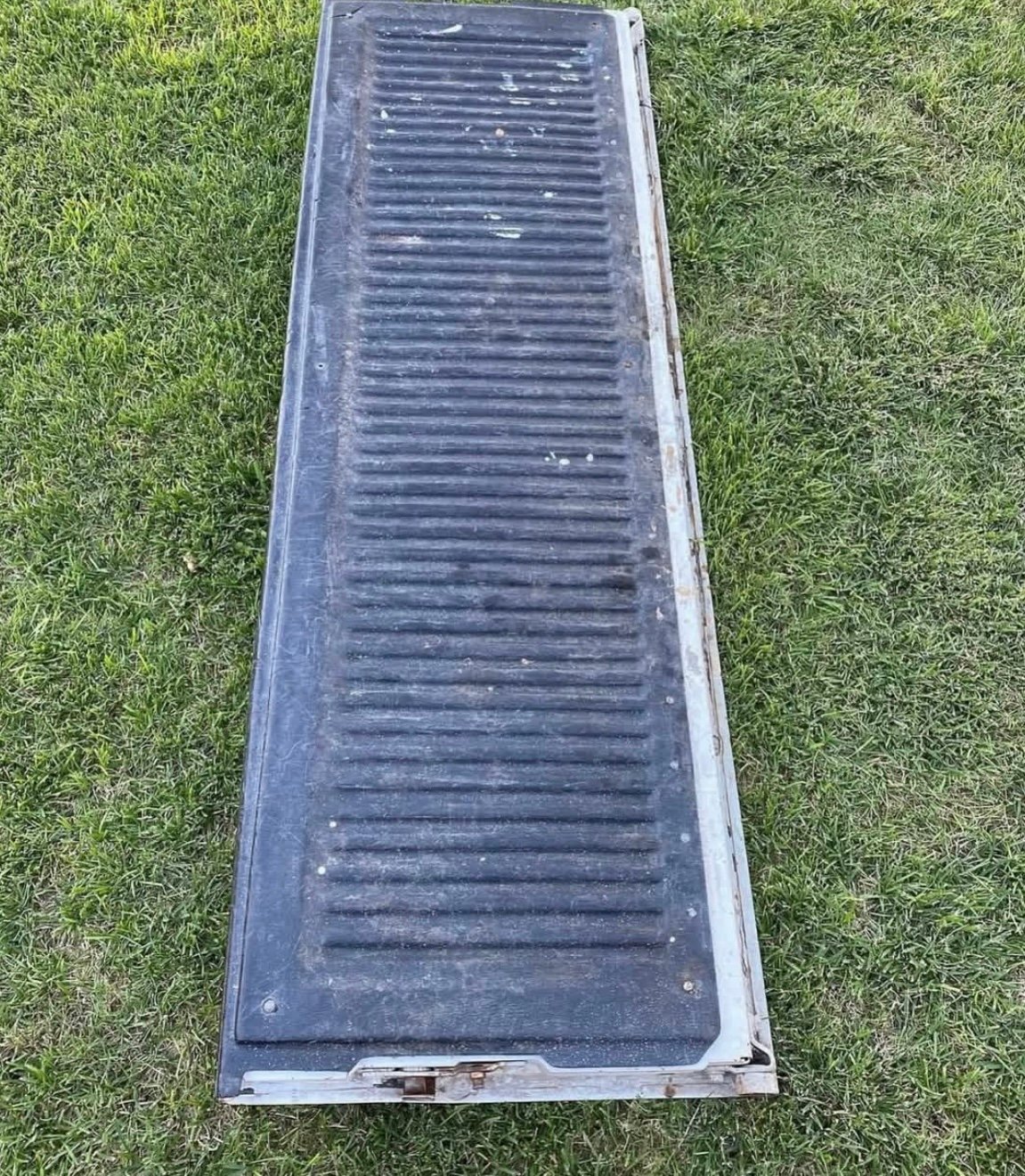 Should fit 81-87. Tailgate is in great shape. Nice and straight not bowed. Normal signs of wear and tear from use. The spots seen are some surface scratches touched up with white paint and the tailgate does have a very small dent (see pic) in the lower left center area but nothing major, it can easily be repaired. 1 light is cracked on the lower part of the housing.