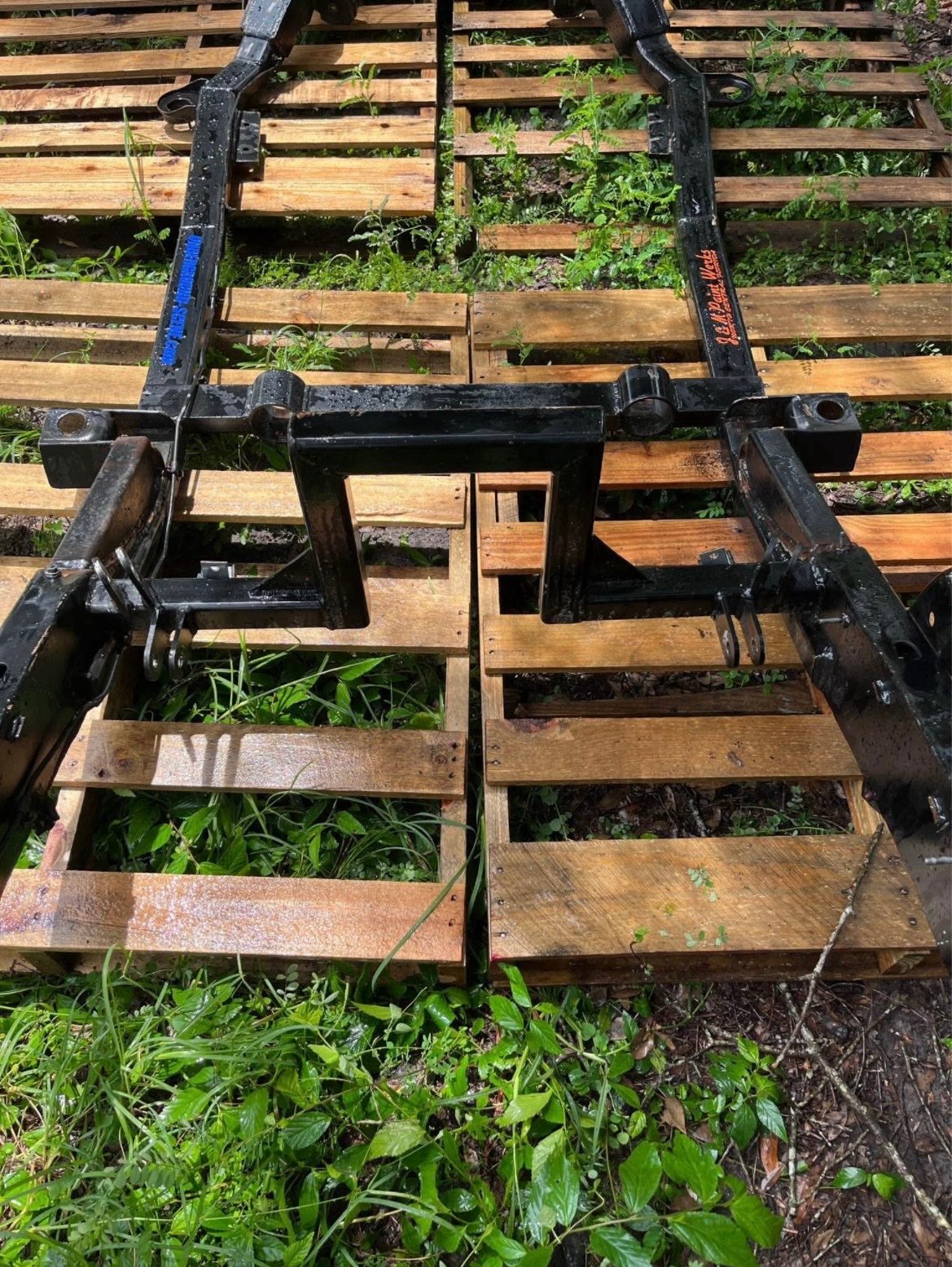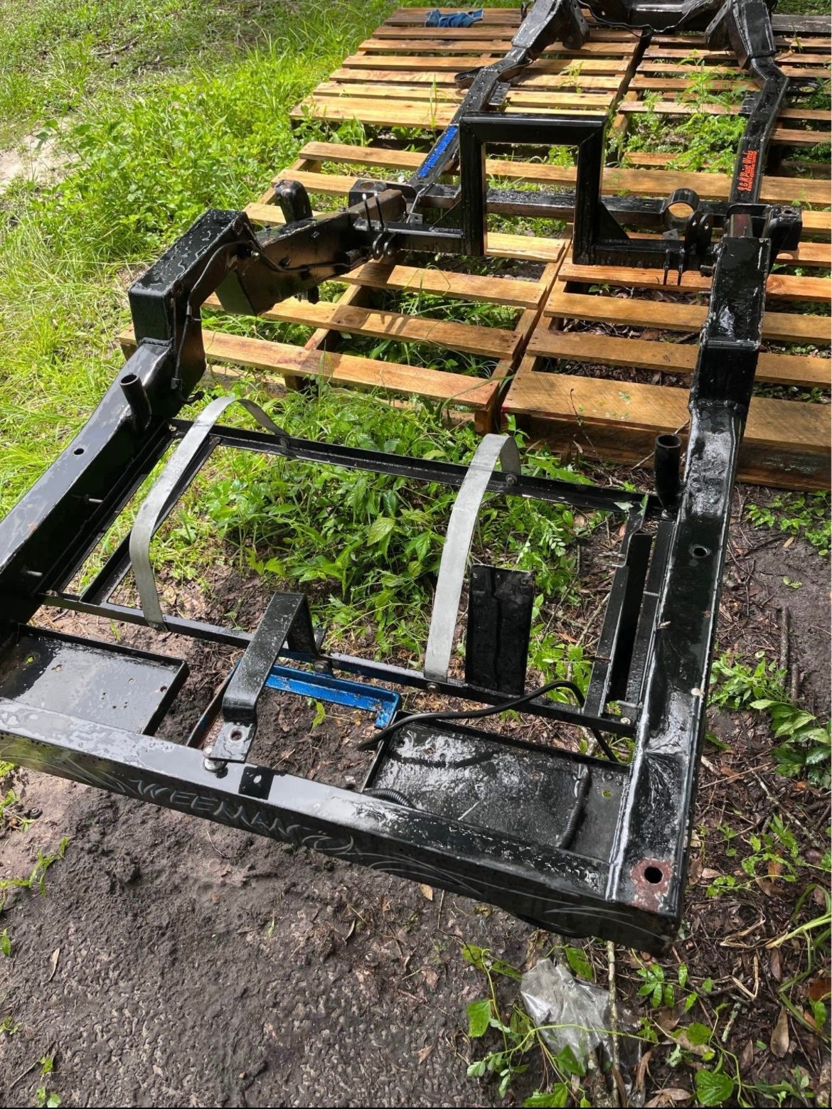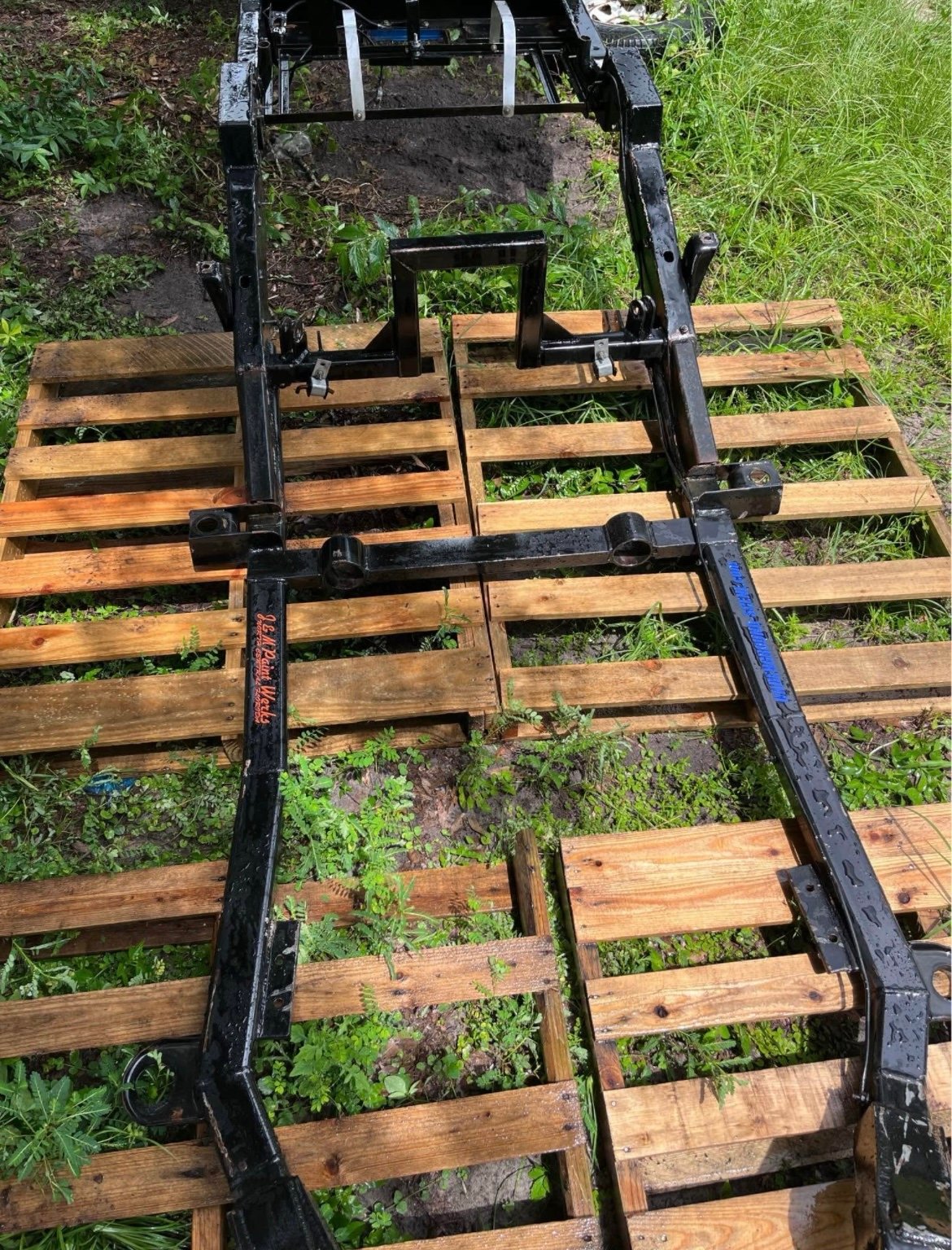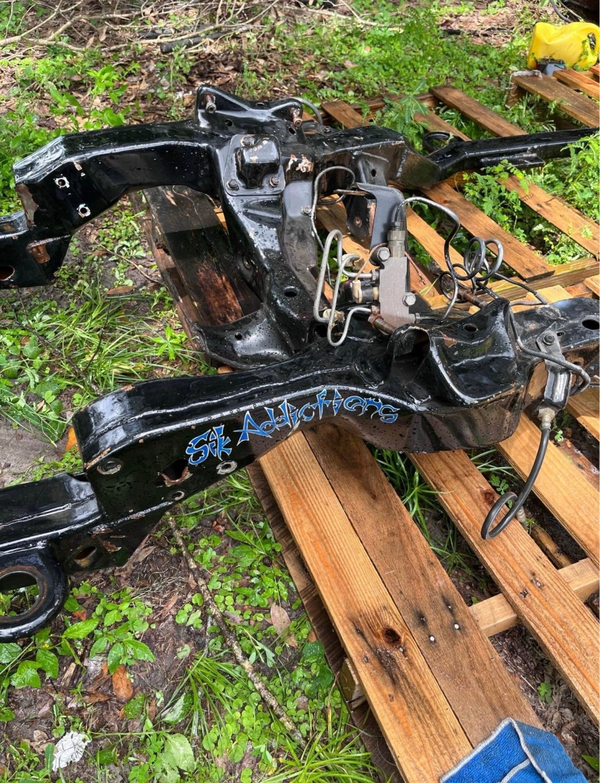 This is a frame from a bagged and bodied v8 s10 you can see the work done to it truck has been all pulled apart frame is all painted and has custom pin stripes firm on price check other listing Is for more parts this is a short bed regular cab will sell frame bed fenders and doors all together