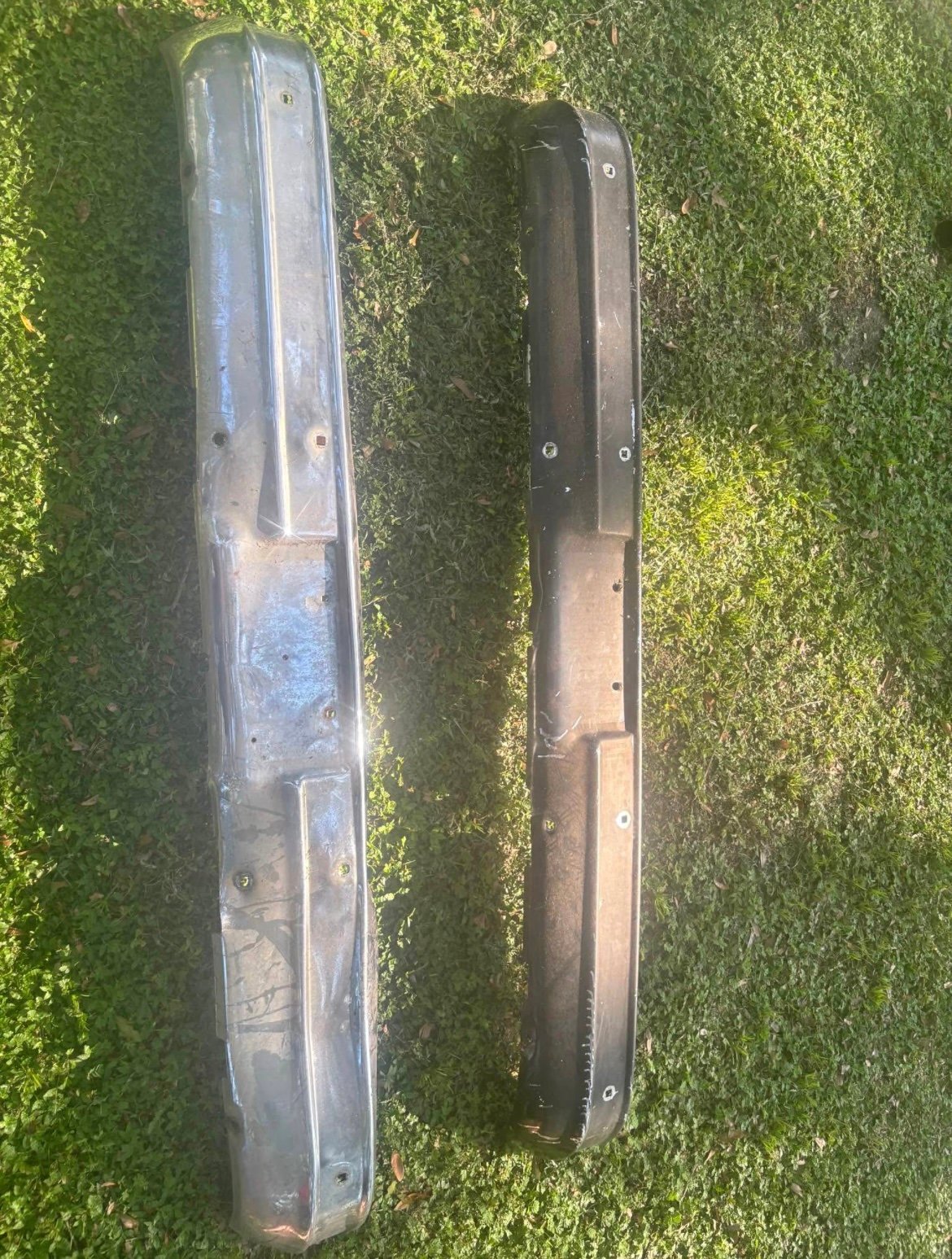 Two square body front bumpers ones in perfect shape that’s painted black. The other one has a few dings in it 150 for black 100 for chrome 225 for the pair.