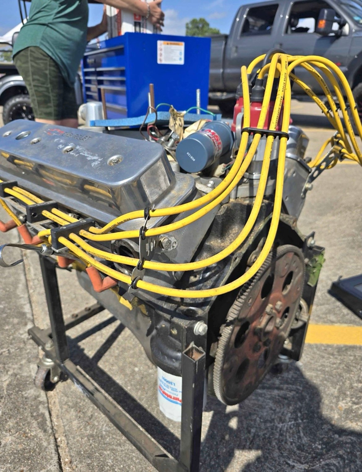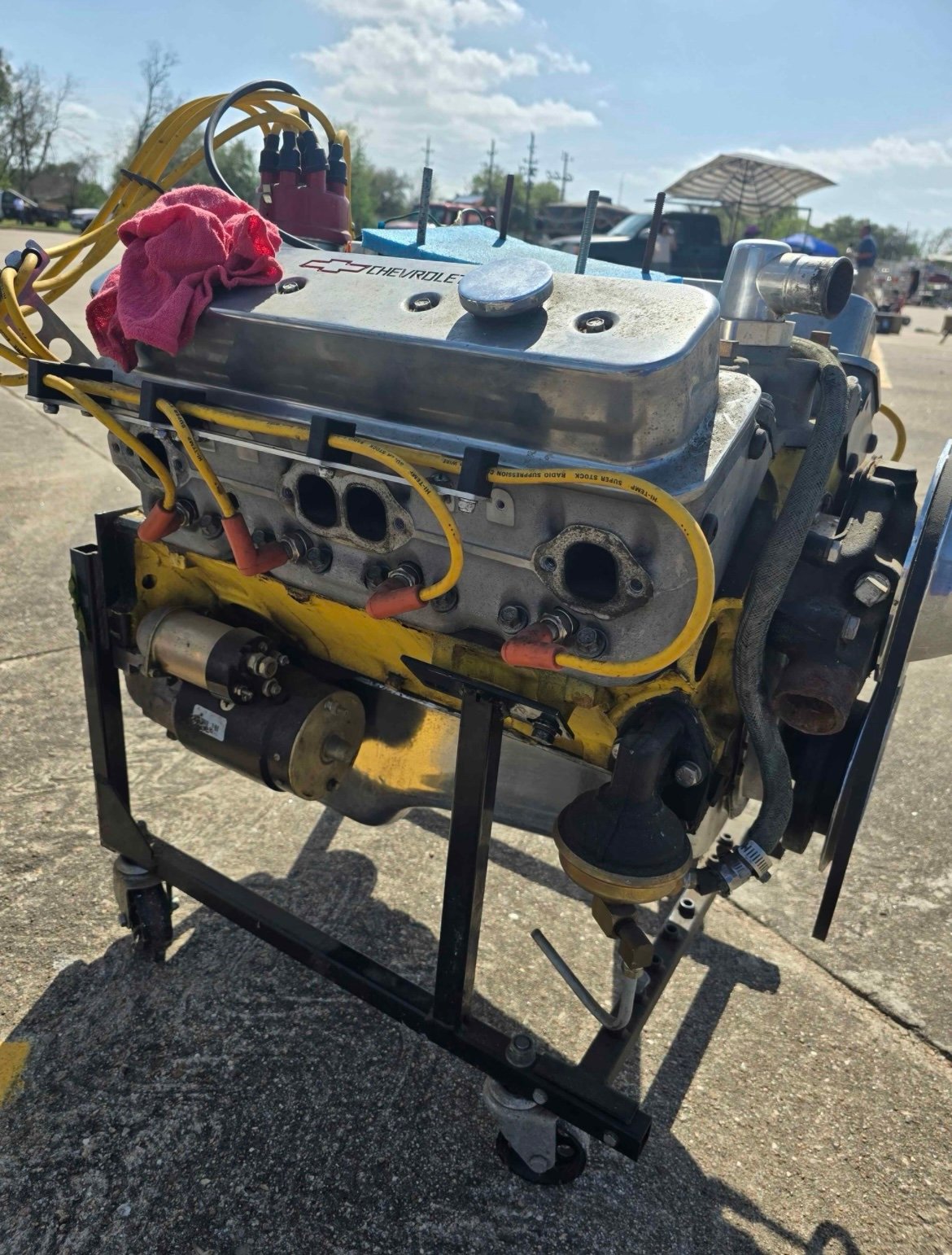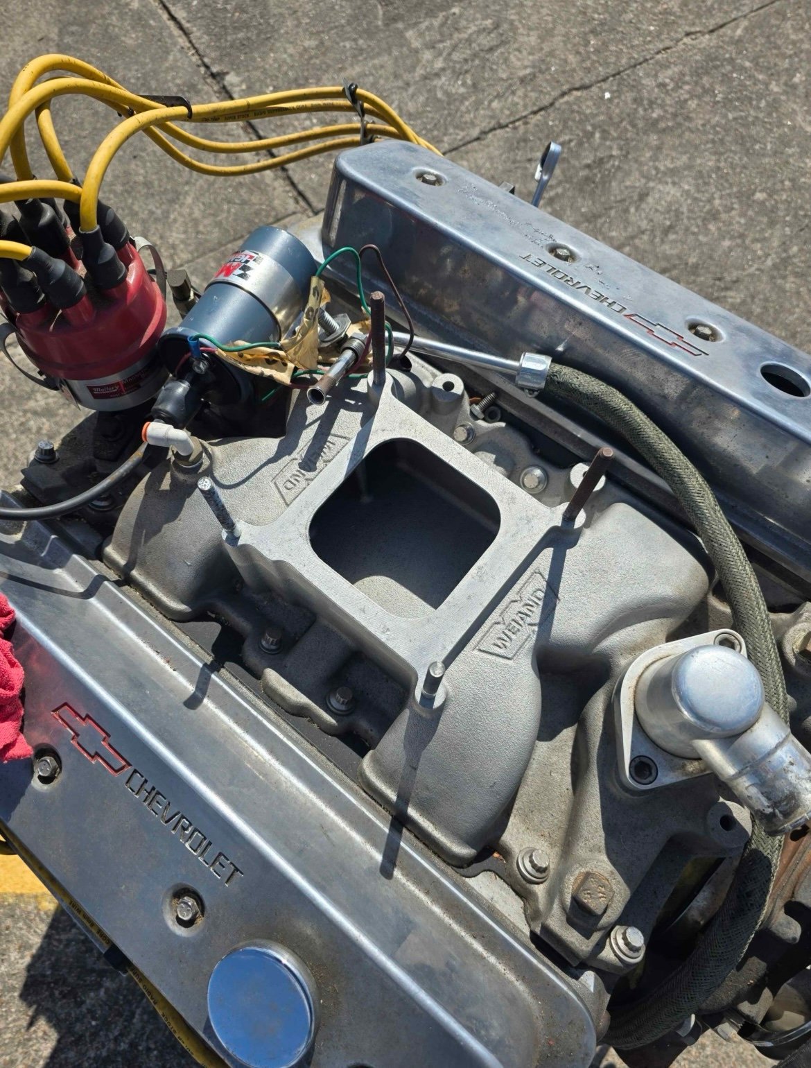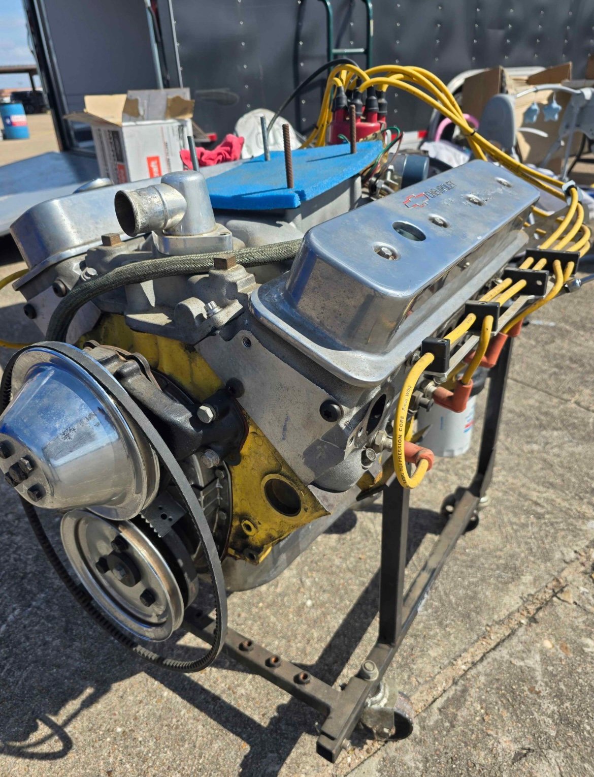 easter sale chevy 283 with It heads, 260 cam pump gas motor, less than 5000 miles. Been in storage, weind intake Mallory dist. Complete long block no carb.