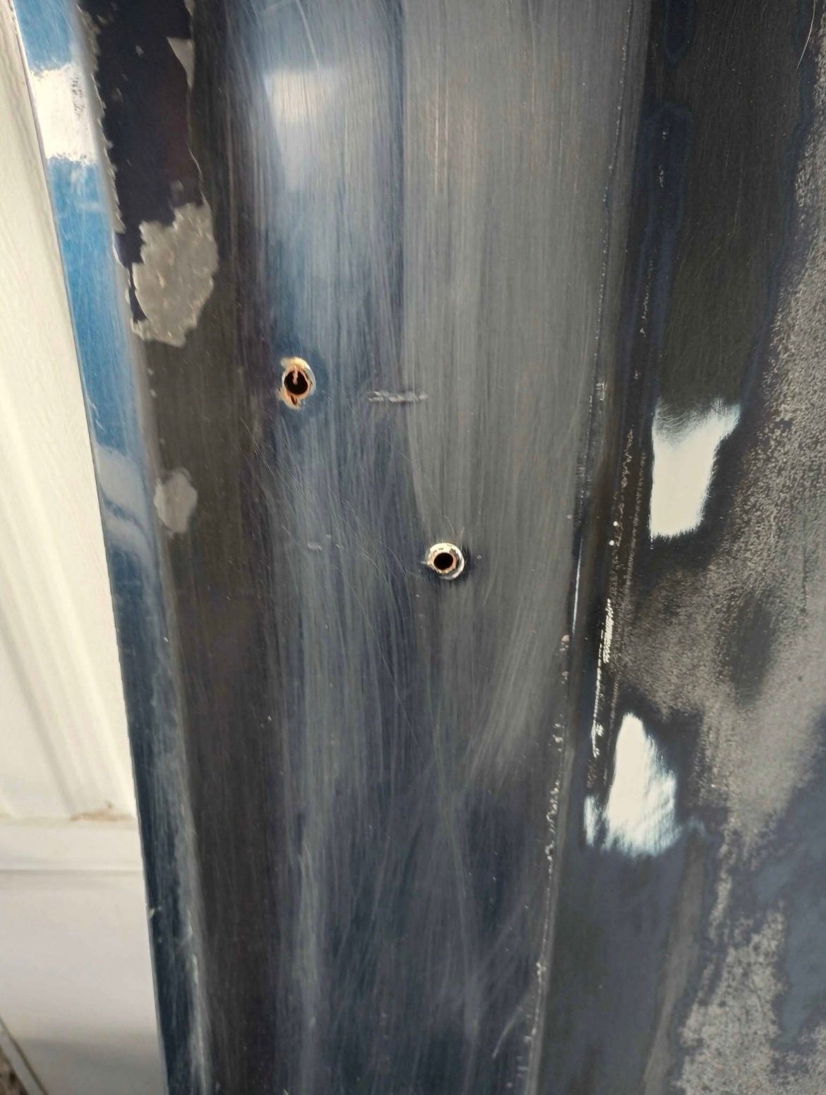 81-87 Fenders. Pretty solid. Have some holes drilled from fender flares that can be filled. Good for larger tires because the wheel opening is cut out at the lower corners m Not drastic. Some rust as seen in pictures. Original GM fenders.