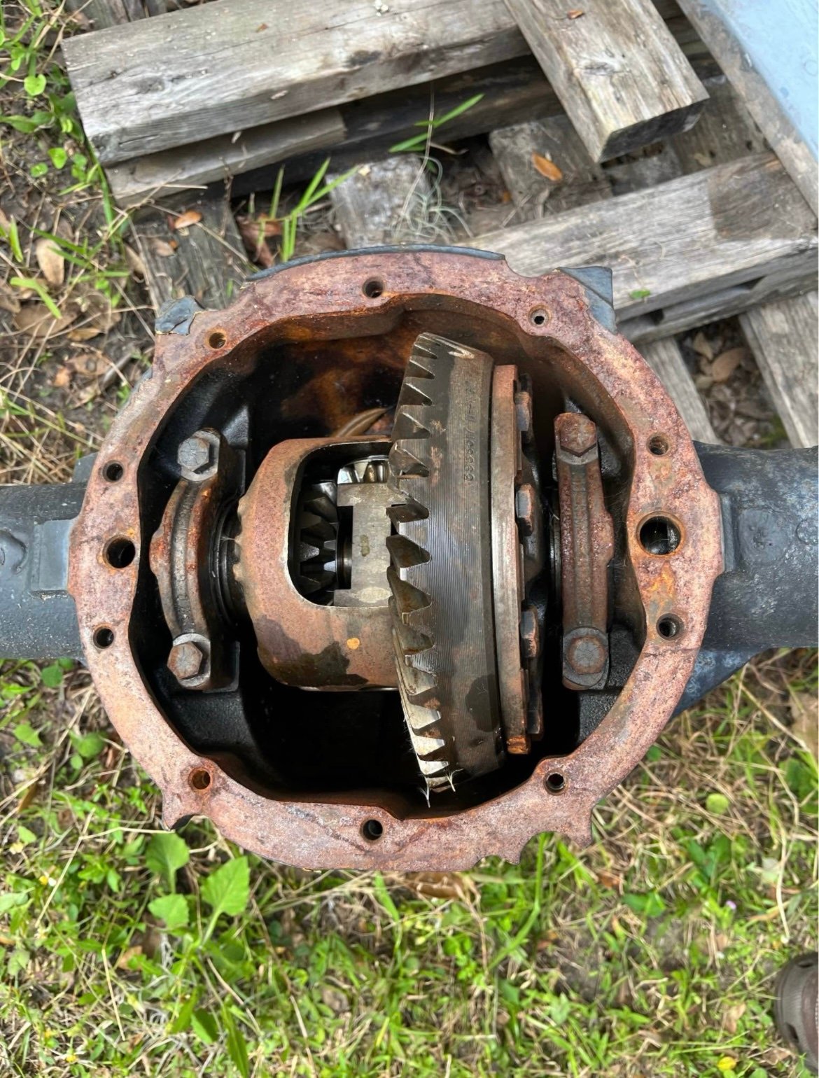 3.73 gear ratio, locking differential out of a 93 K10. 6 lug axle, missing cover, will need resealed and new brake assemblies.