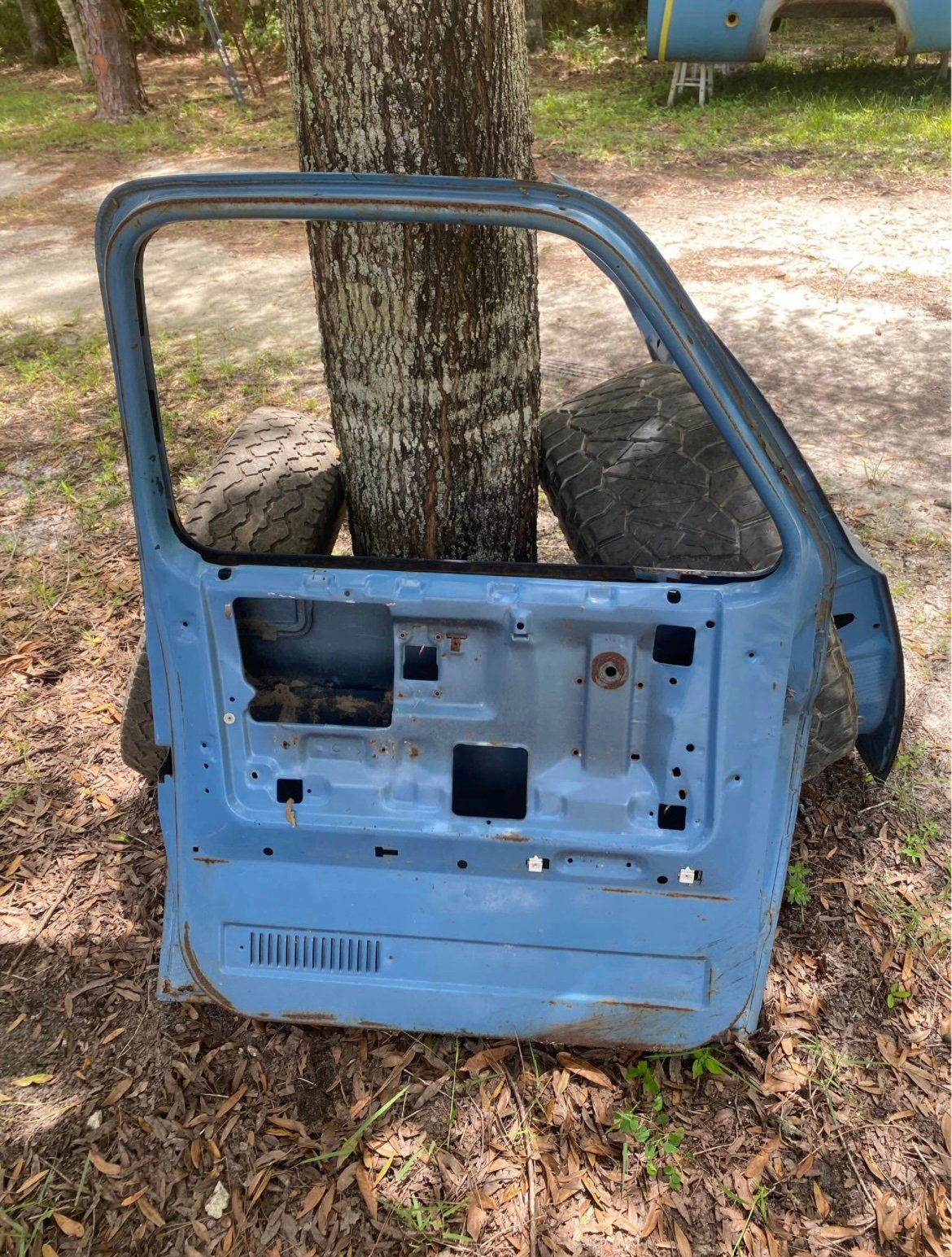 Driver and passenger side squarebody doors, they will fit any truck cab 73-88 but are originally early 80s interior. They have a couple of dings but no rot.