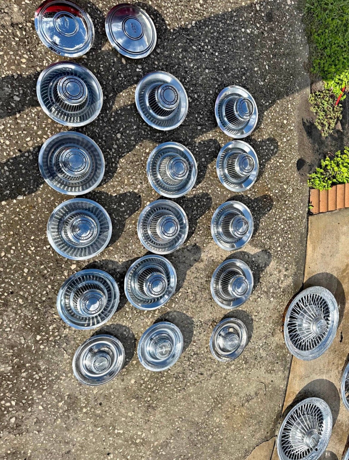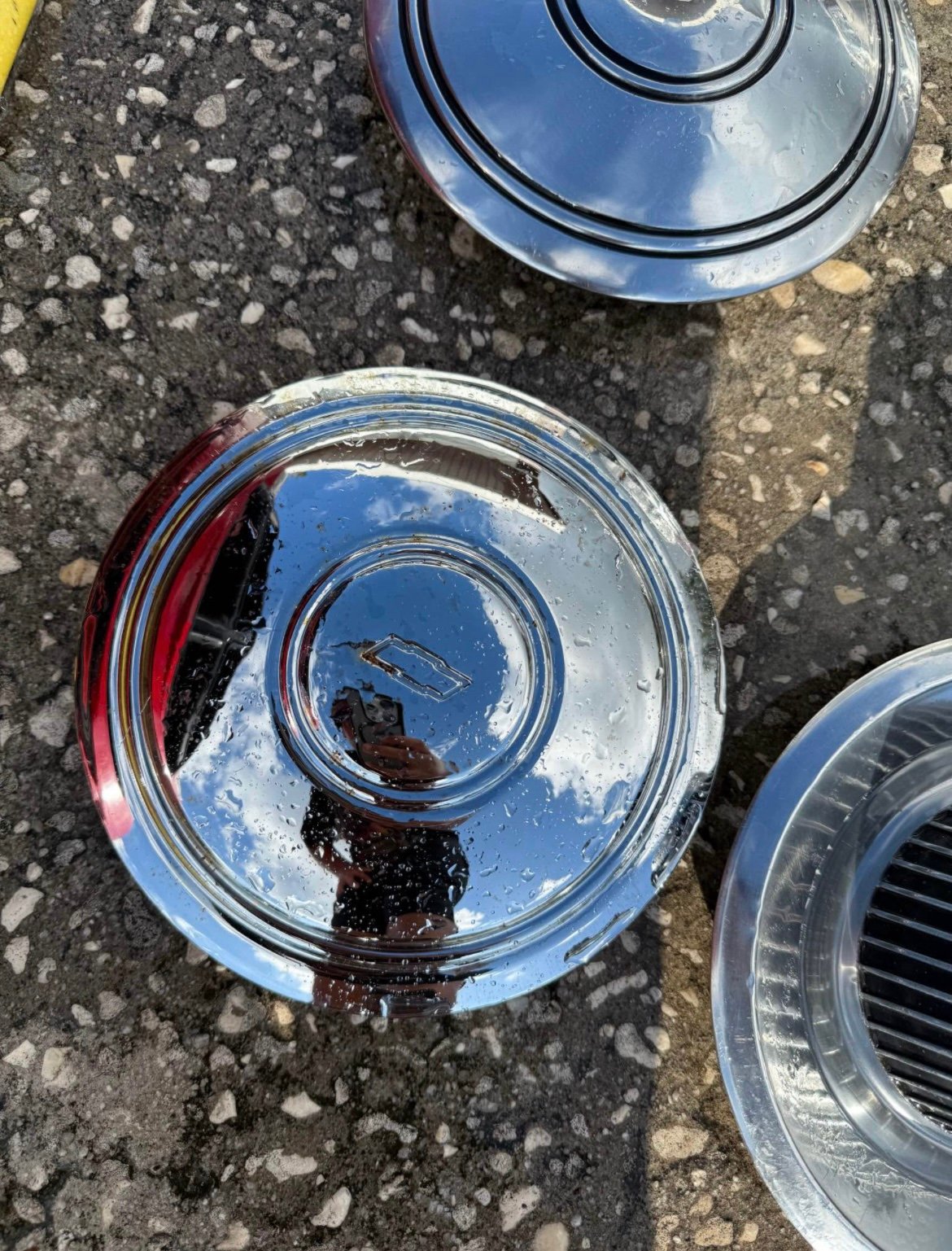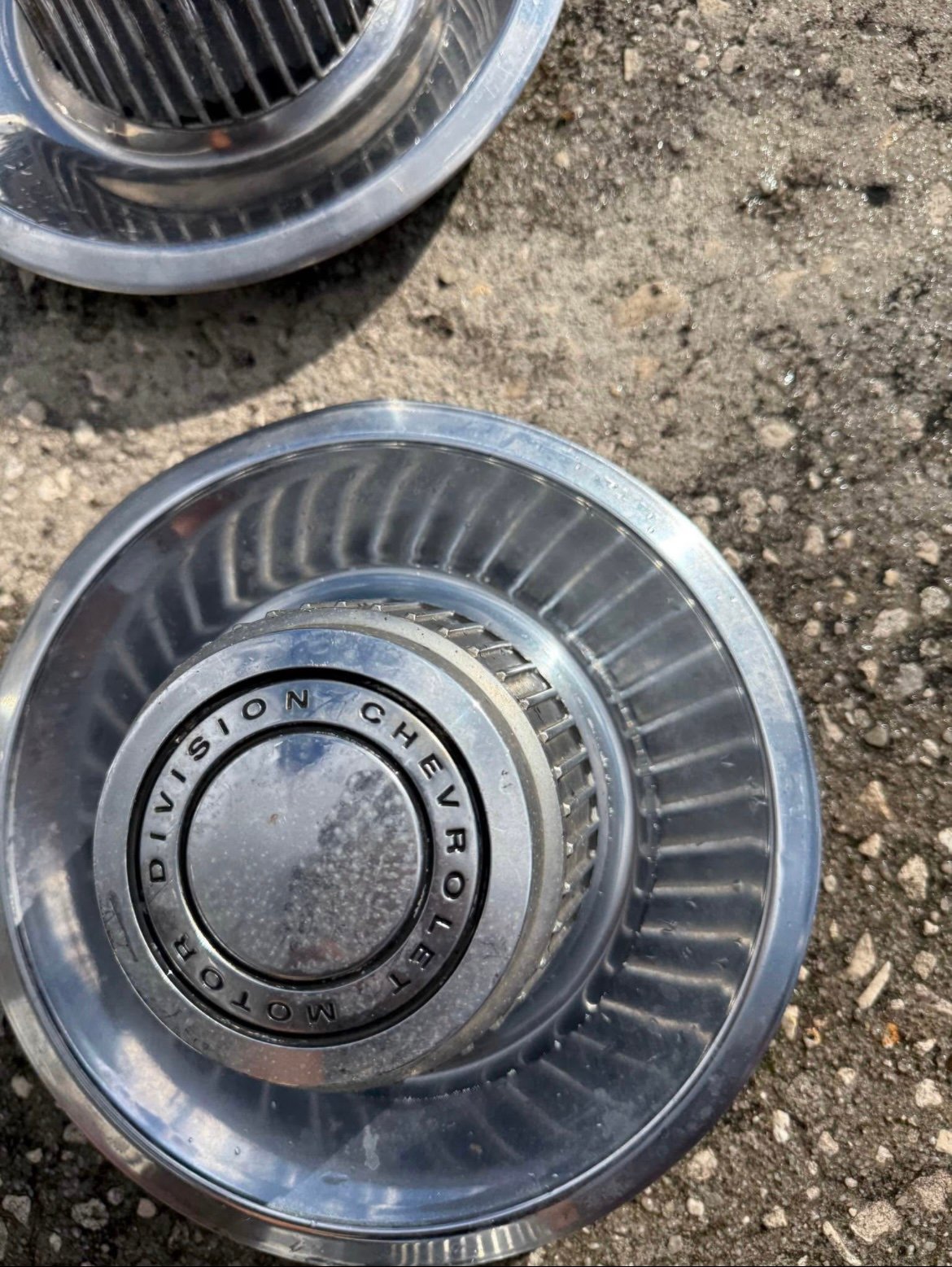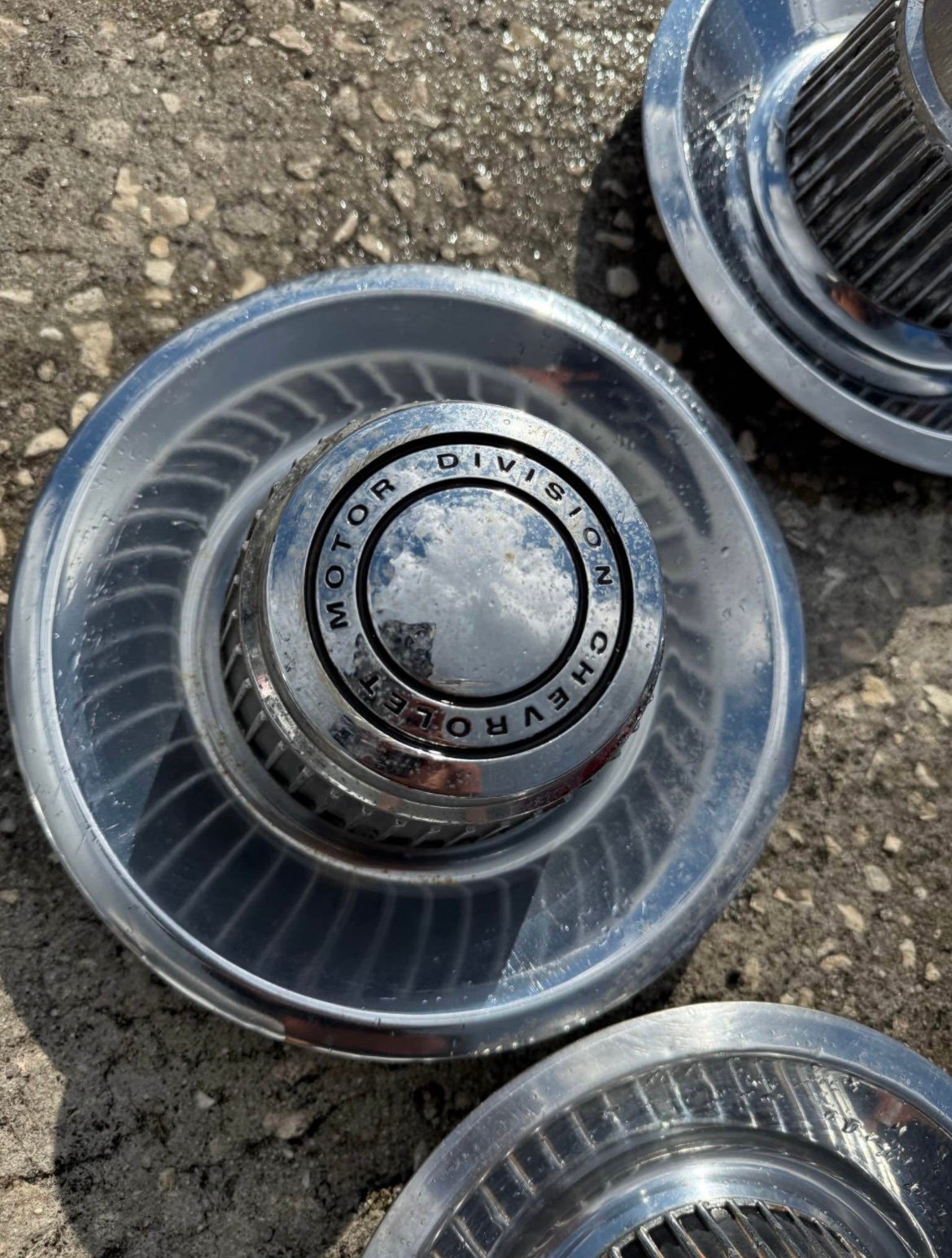 3 full sets of chevy rally centercaps 3 flat caps and 2 moon caps we will sell the full package