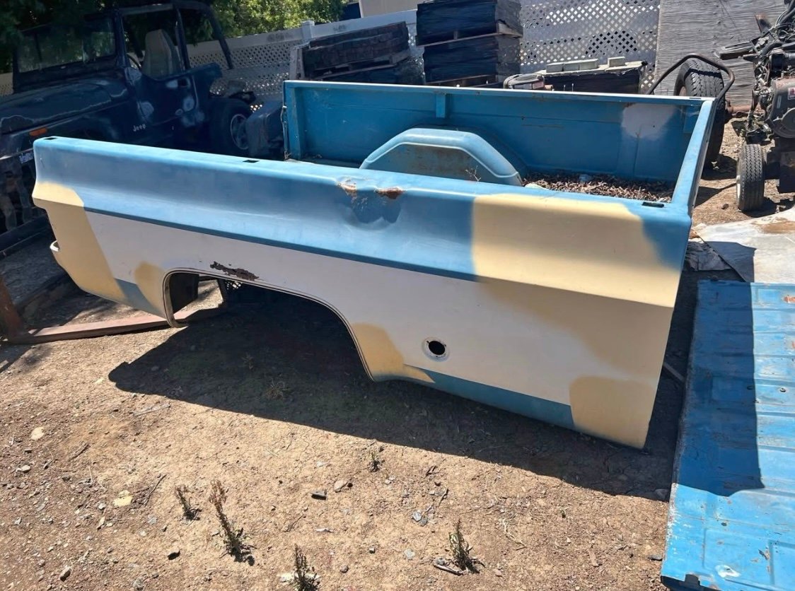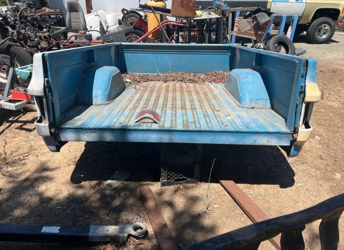 8ft long bed off 73 Chevy pickup tailgate included but it’s banged up pretty good.