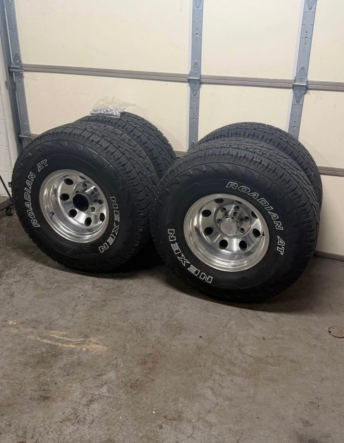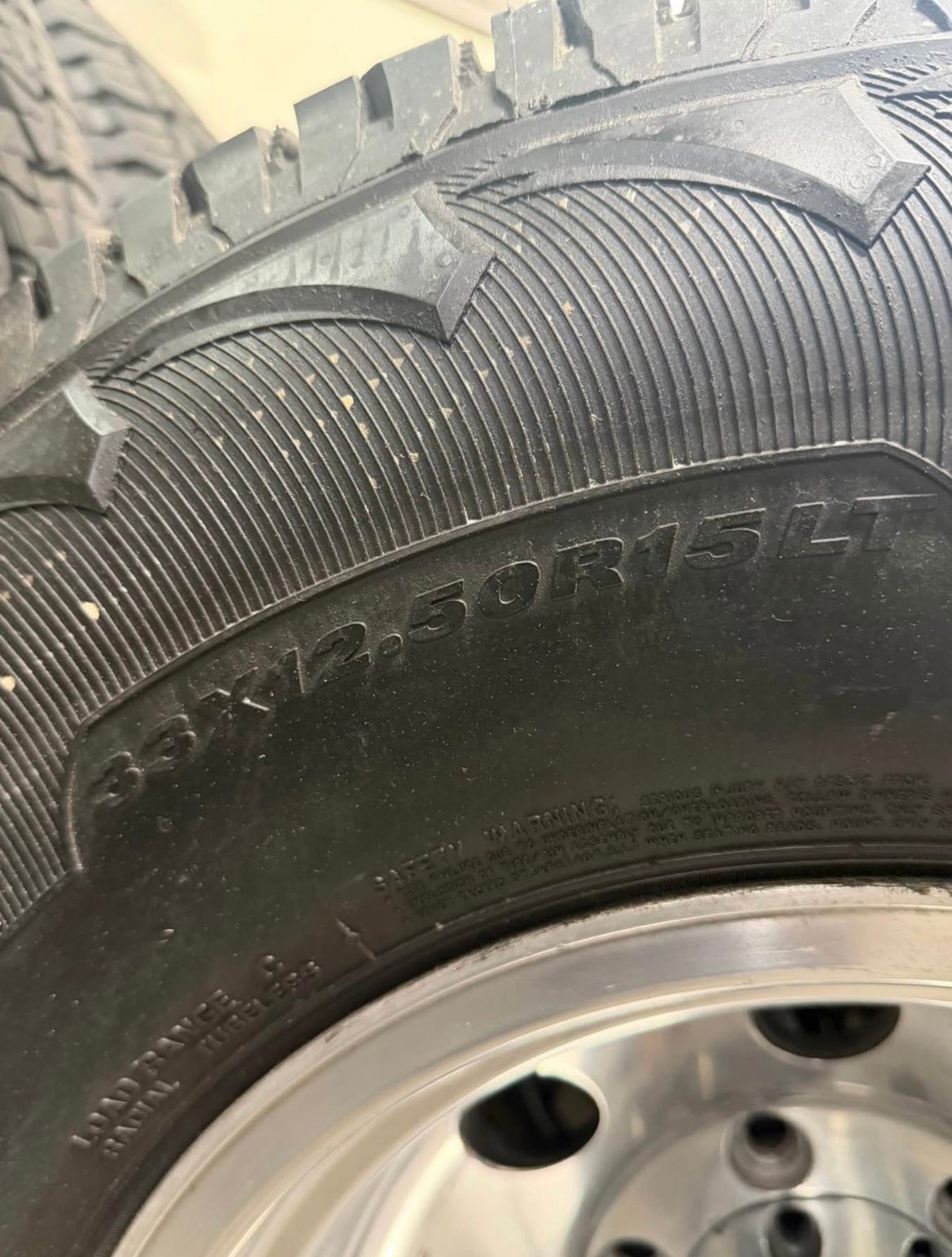 Pro comp 15×10 polished aluminum wheels with 33×12.50×15 Nexen Tires like new.