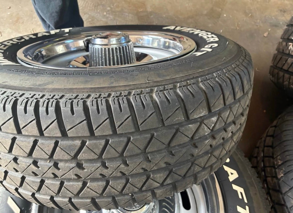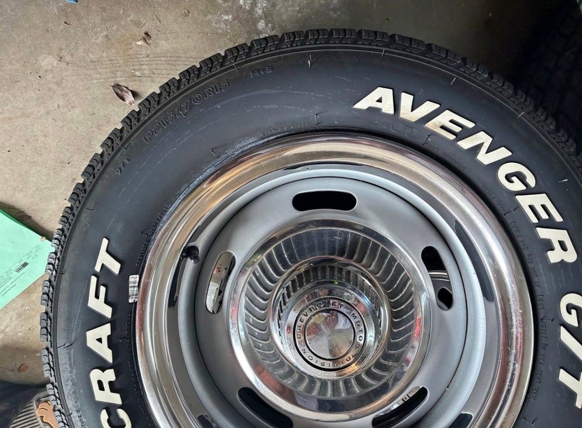 The set includes multiple Mastercraft Avenger GT tires mounted on Chevrolet wheels.with a center cap featuring the Chevrolet logo.