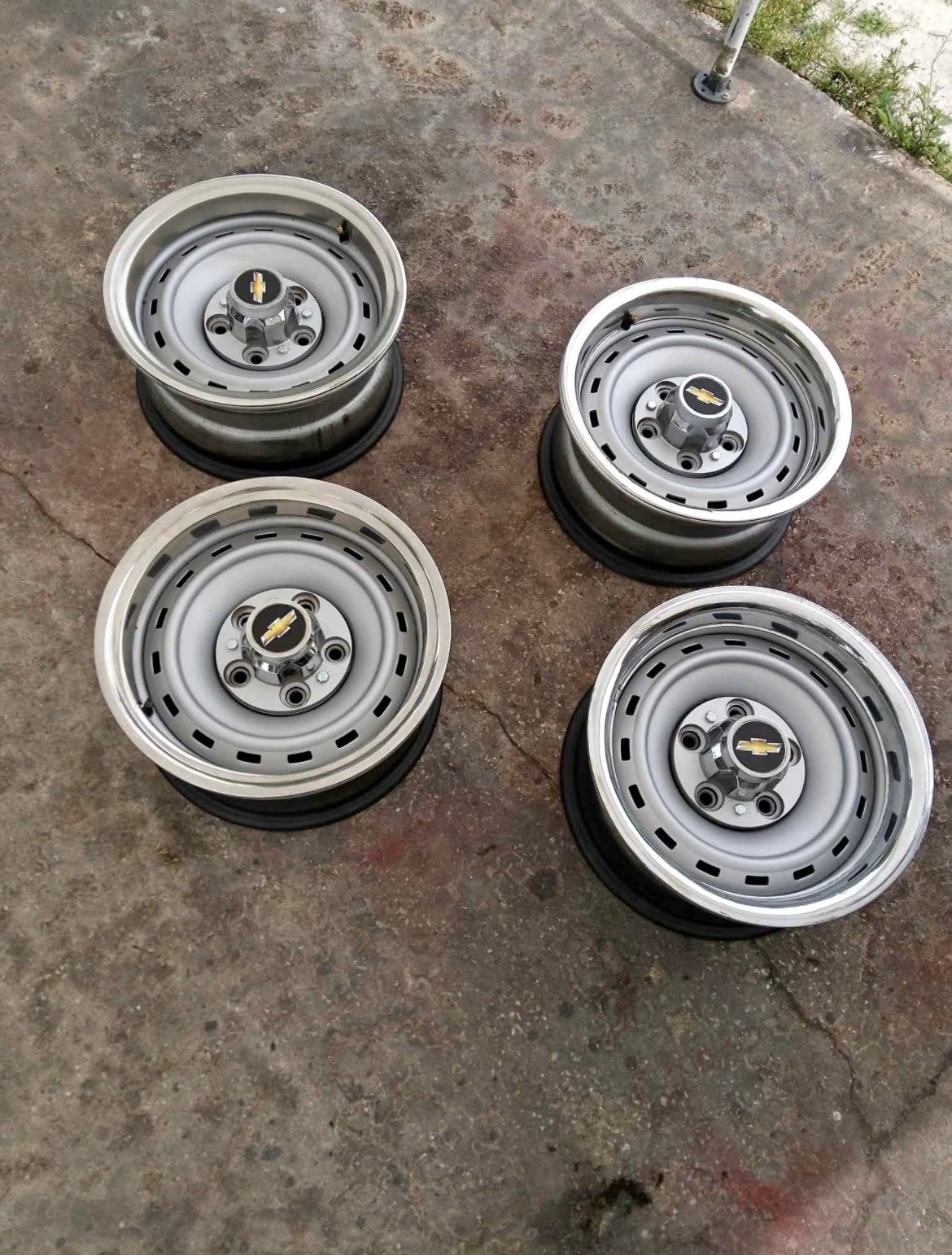 Professional prep, and sprayed with high temp Aluminum Ceramic Coating. Very durable. Original metal center caps with new Bowtie emblems. They will fit full size Chevy/GMC Pickup trucks, Vans,.