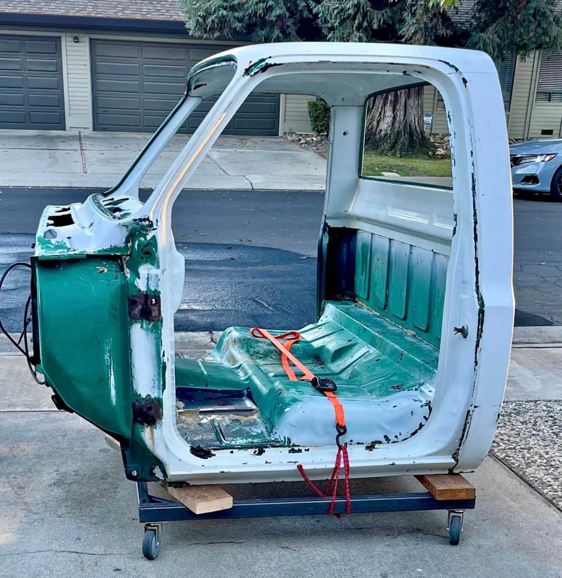 Cab for a square body C10 – solid floor pan – no rust. The cab is bare and ready for your C10 project. Sold for parts only, no title.