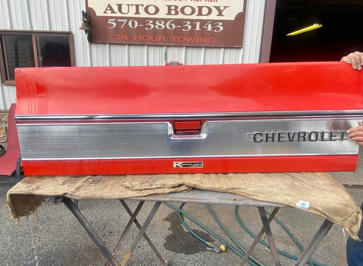 1973 squarebody tailgate taken off when new to put in a camper it is perfect other than ding int the aluminum band trim stainless is perfect