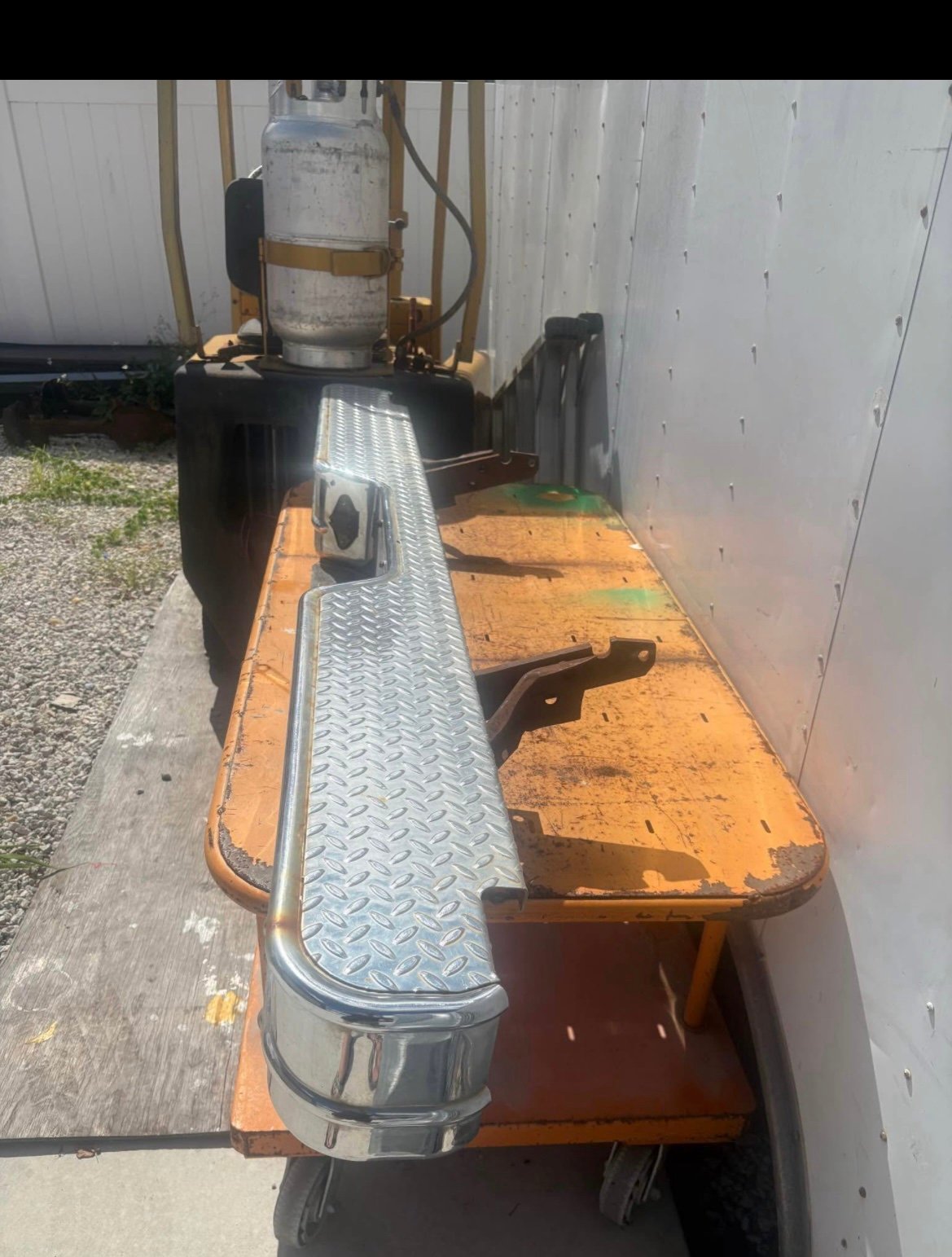 item still available if item is up it’s available original square body chrome bumper in really good shape no rust.